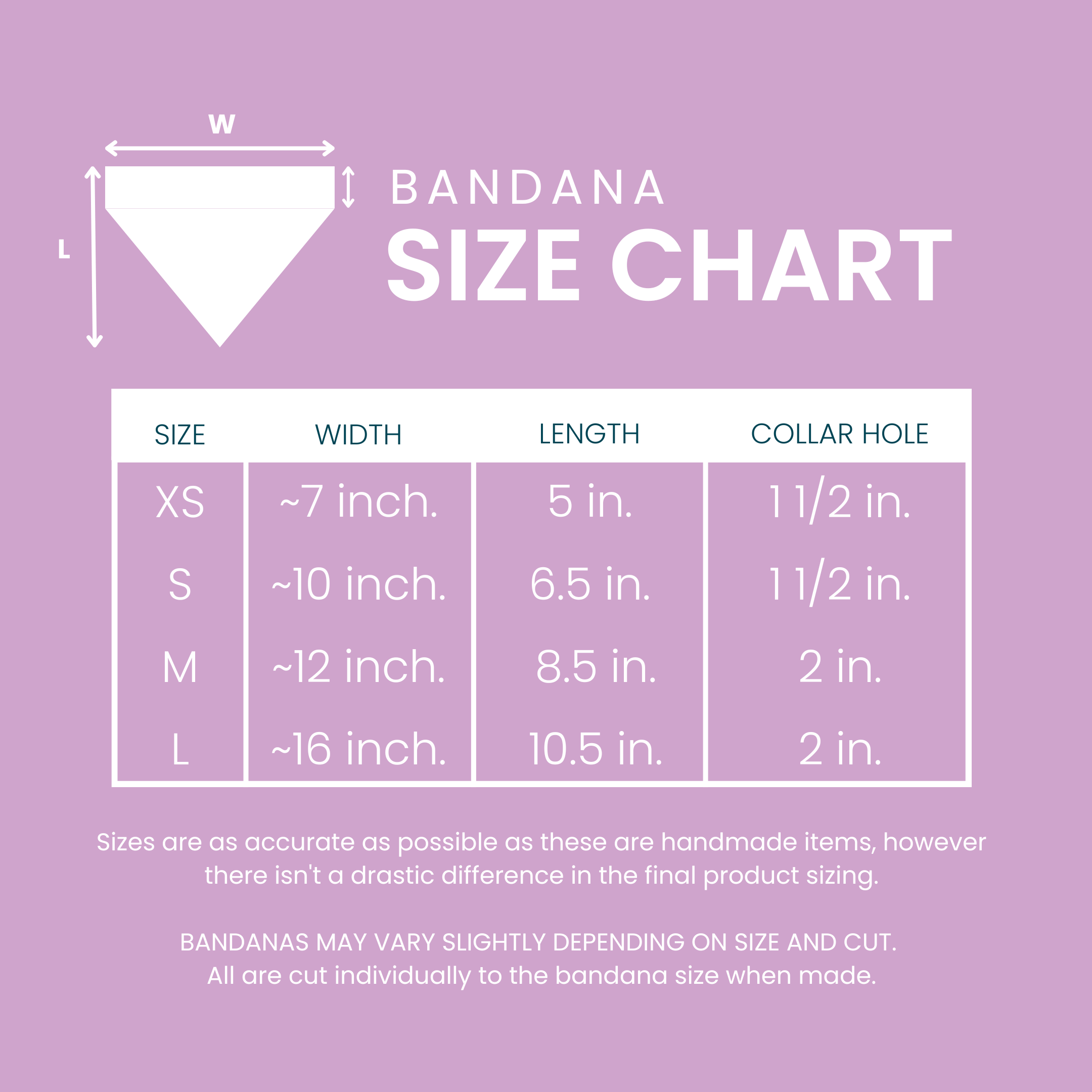 All bandanas are Handmade! See size chart below. Message us if you have any questions!