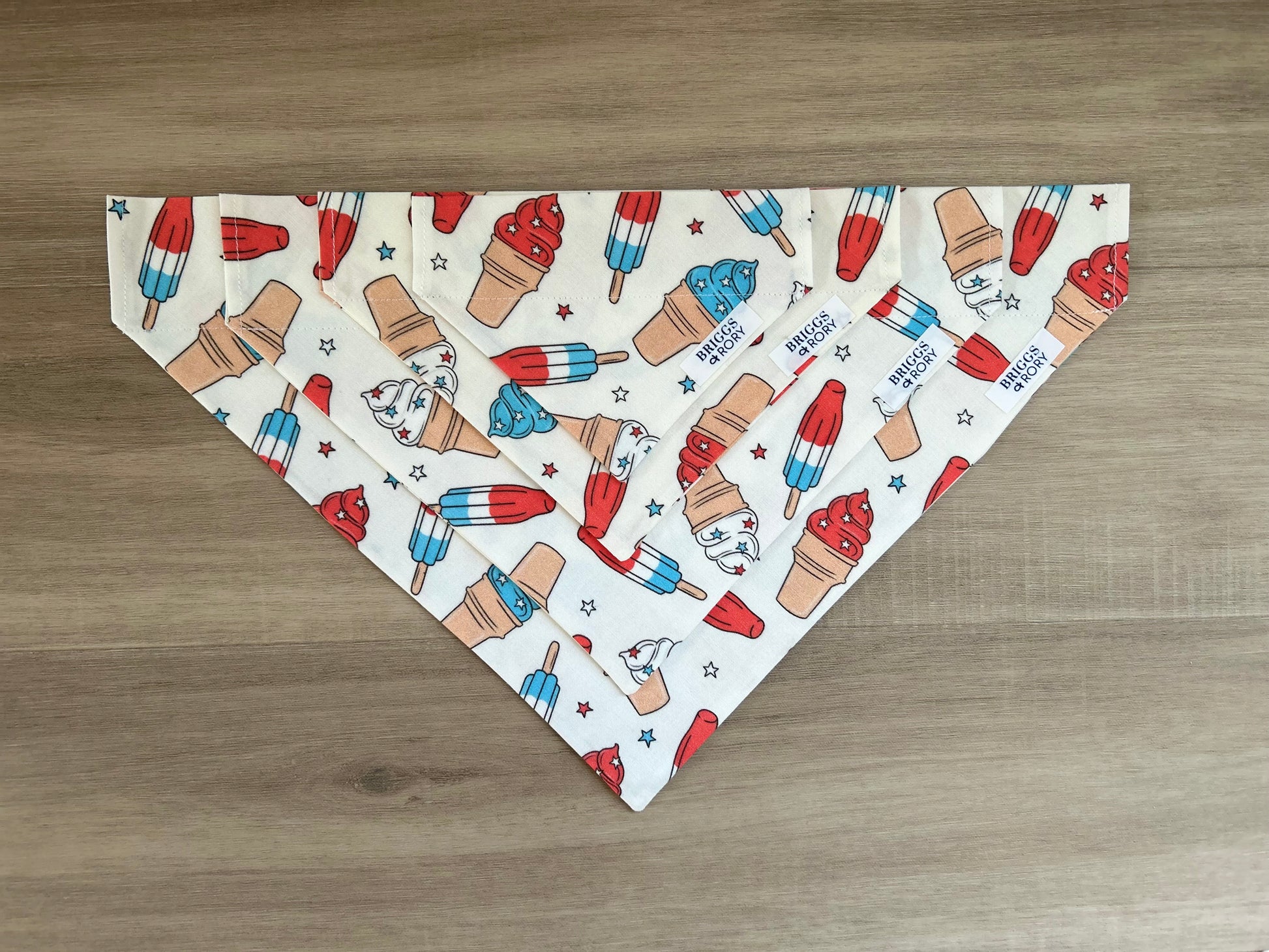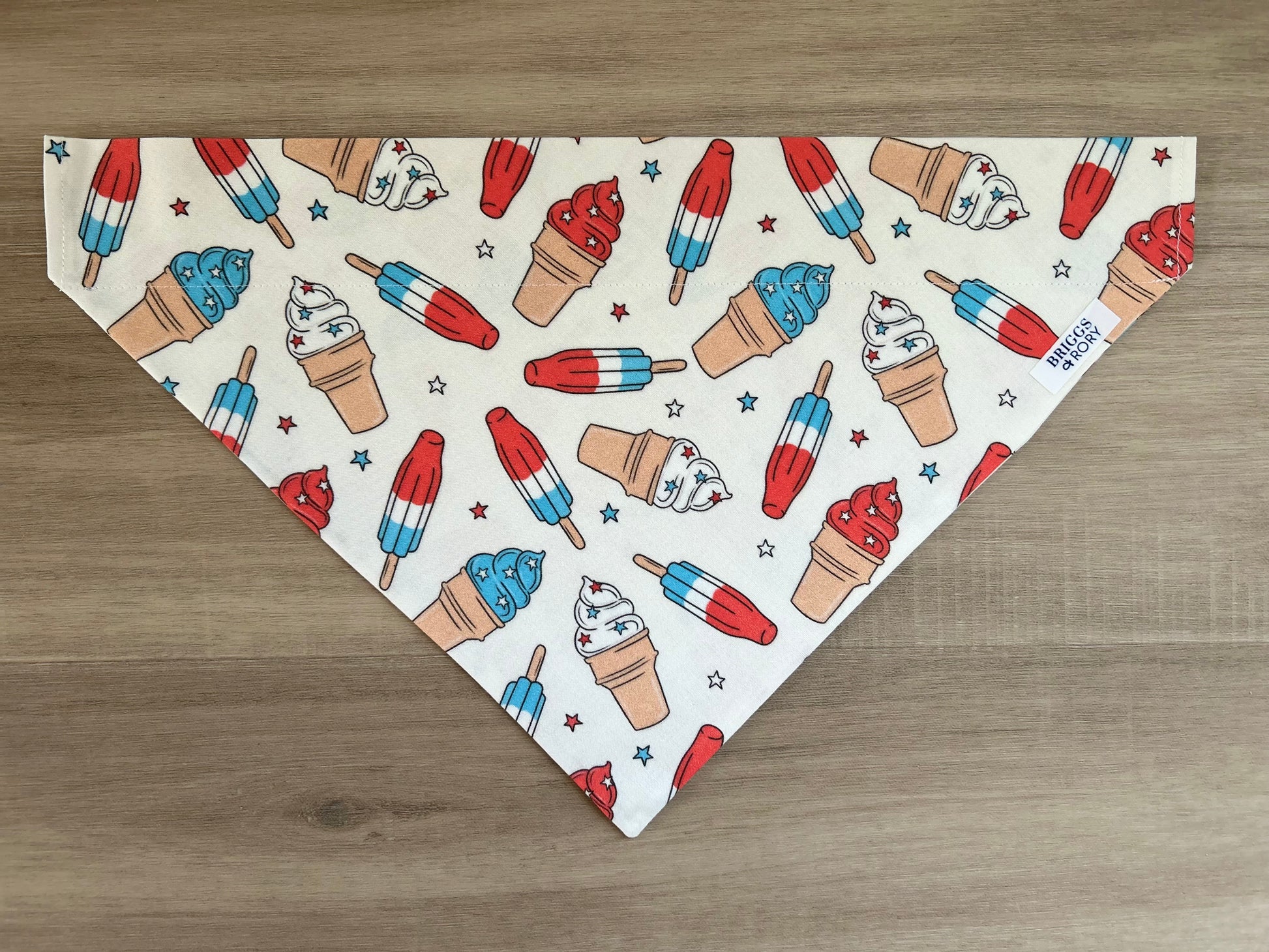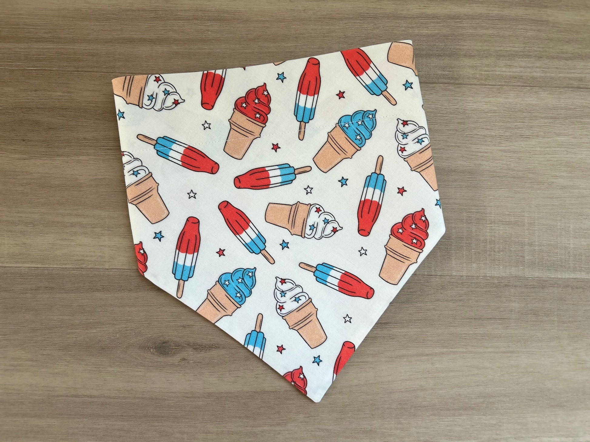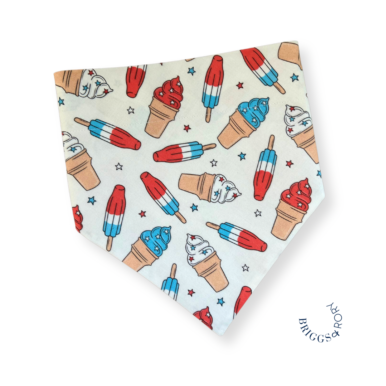 Scoop up the sweetness with our Summer Ice Cream Dog Bandana. This delightful accessory adds a cool touch to your pup's style. Shop now for a treat-inspired addition to your furry friend's wardrobe and is perfect for the 4th of July!